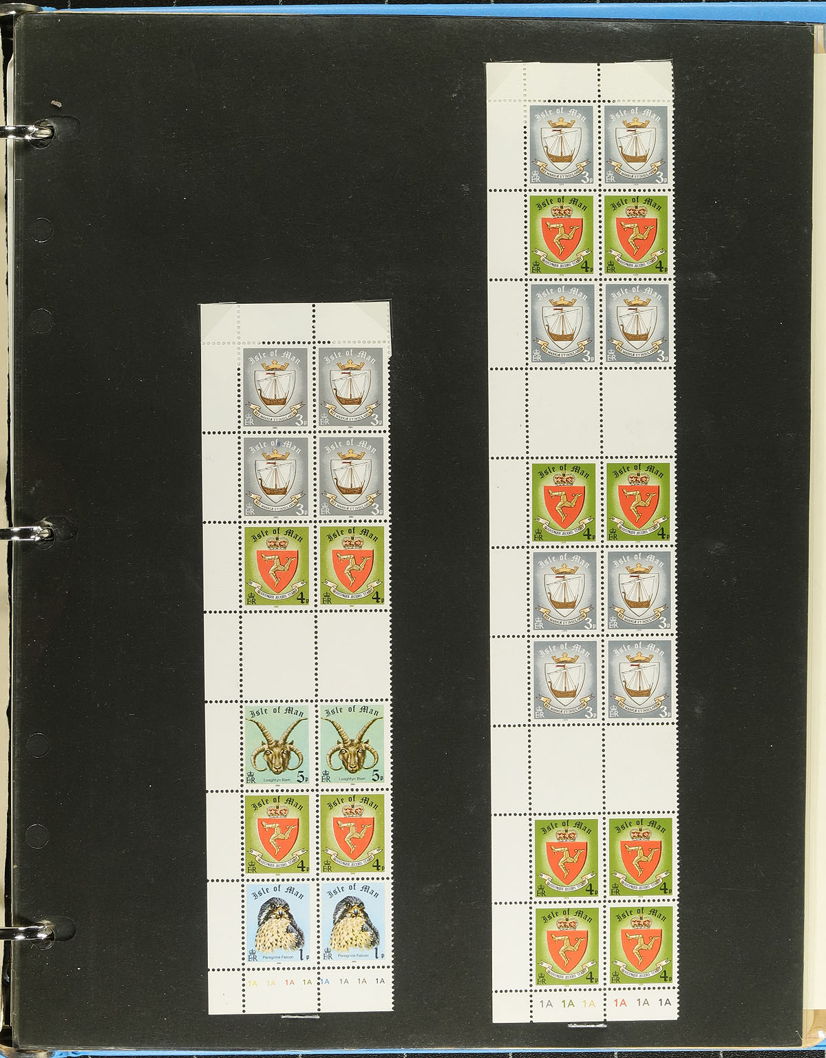 Collection of primarily never hinged Isle of Man, 1973-1992, containing many hundreds of stamps, noting several sets, souvenir sheets, gutter pairs, along with 35 covers (mostly first day covers), and a few revenue issues, in several stock pages housed in a binder. A spot check indicated some material cataloguing $5 to $10 each, face value alone totals £172. A good lot for Commonwealth collectors, and should be expanded further, overall fine to very fine. Estimate =