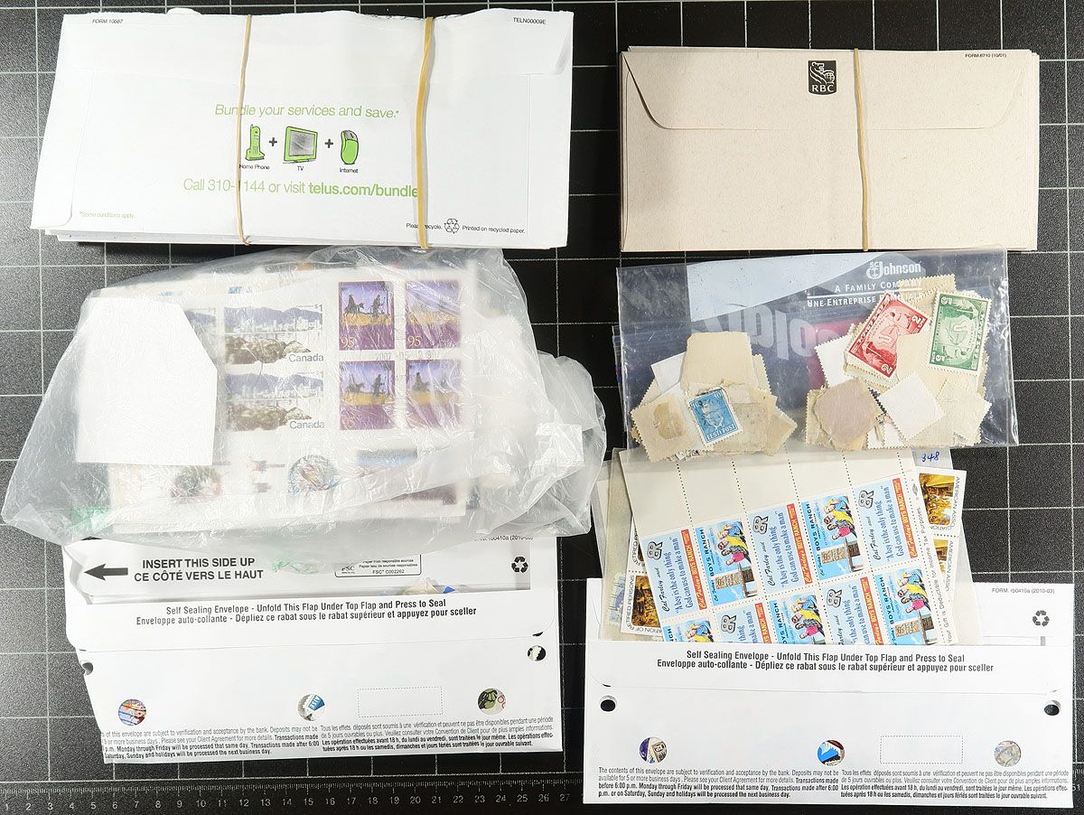 Large accumulation of thousands of worldwide stamps filling a large carton. We note a wide variety of material, generally ranging from the late 1890's to the 1980's, on album and stock pages, on and off paper stamps in envelopes, glassines, baggies, and so much more. A spot check indicated singles and sets retailing $3 to $5 each, leaving potential finds to the dedicated collector. A nice lot for the worldwide collector, just in time for the winter season. Estimate =