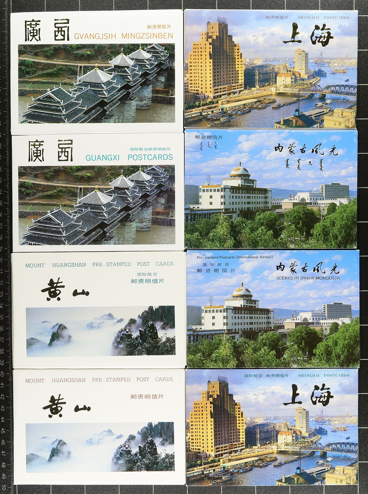 Very nice group of PRC China pre-stamped postal stationery view cards, 1986-2000. This lovely group contains 56 packs of 10 (560 individual cards in total), all in the original folders for both domestic and foreign air mail rates with many wonderful views from various locations in PRC China. Some mild duplication for a few years, still a clean lot for the stationery or post card collector. Estimate =