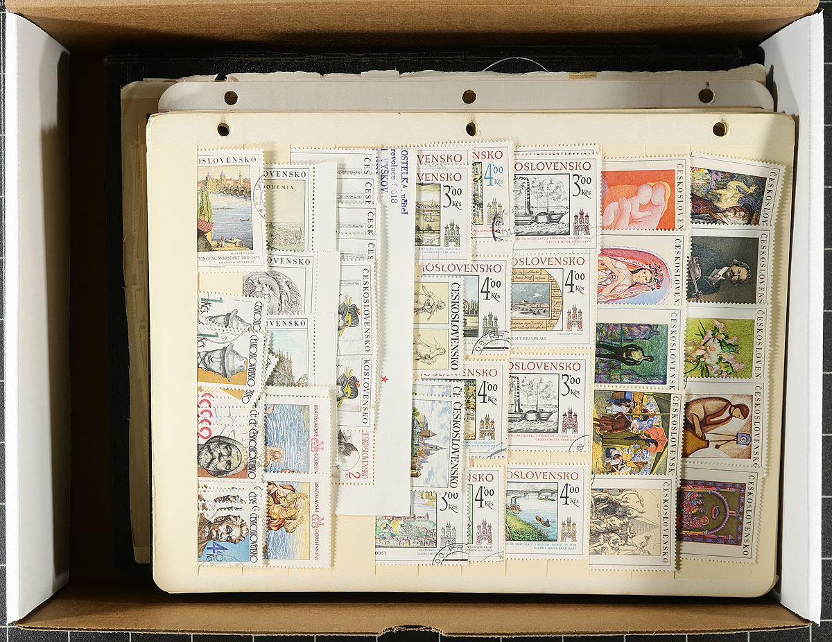 Accumulation of mint and used Czechoslovakia, 1918-1988, containing a few thousand stamps in roughly 100 homemade and stock pages. A spot check indicated mostly used material, including a few perfins from 1918 up to 1960, with a mixture of mint and used material from the 1960's to the 1980's, noting several sets and souvenir sheets. Owner's older Scott catalogue value for the lot in excess of US$450.00, leaving finds, including better postmarks, to the dedicated collector. Overall fine to very fine. Estimate =