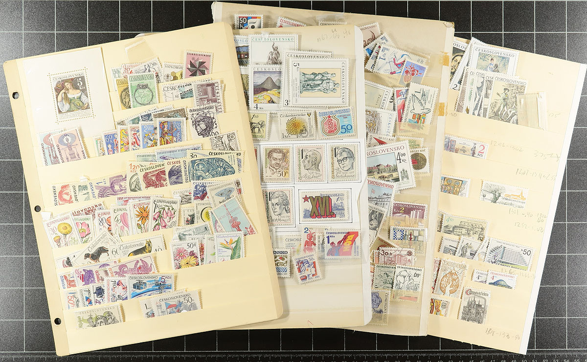 Accumulation of mint and used Czechoslovakia, 1918-1988, containing a few thousand stamps in roughly 100 homemade and stock pages. A spot check indicated mostly used material, including a few perfins from 1918 up to 1960, with a mixture of mint and used material from the 1960's to the 1980's, noting several sets and souvenir sheets. Owner's older Scott catalogue value for the lot in excess of US$450.00, leaving finds, including better postmarks, to the dedicated collector. Overall fine to very fine. Estimate =