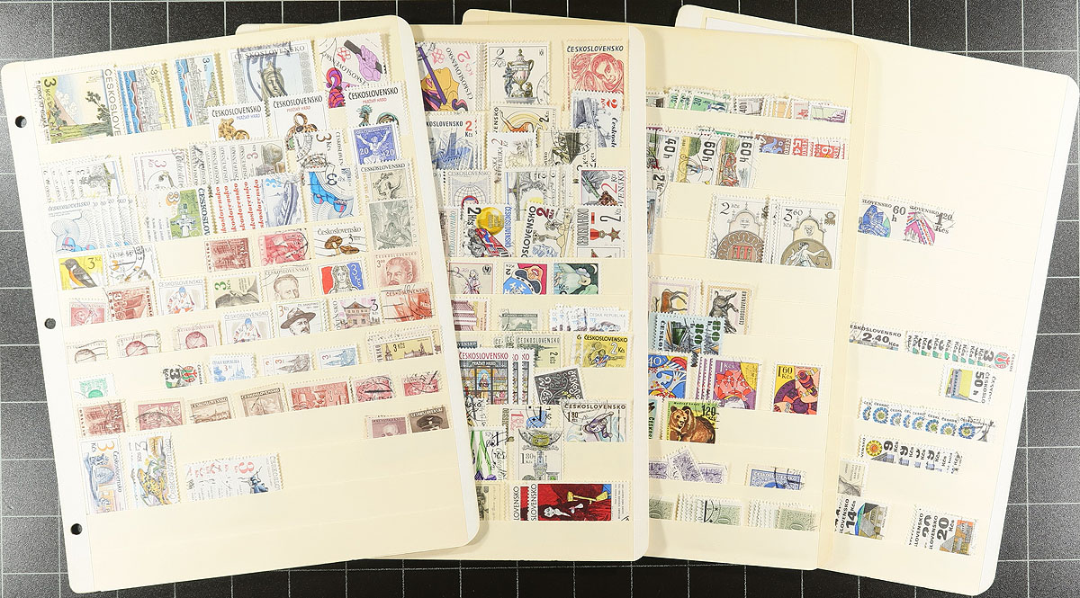 Accumulation of mint and used Czechoslovakia, 1918-1988, containing a few thousand stamps in roughly 100 homemade and stock pages. A spot check indicated mostly used material, including a few perfins from 1918 up to 1960, with a mixture of mint and used material from the 1960's to the 1980's, noting several sets and souvenir sheets. Owner's older Scott catalogue value for the lot in excess of US$450.00, leaving finds, including better postmarks, to the dedicated collector. Overall fine to very fine. Estimate =