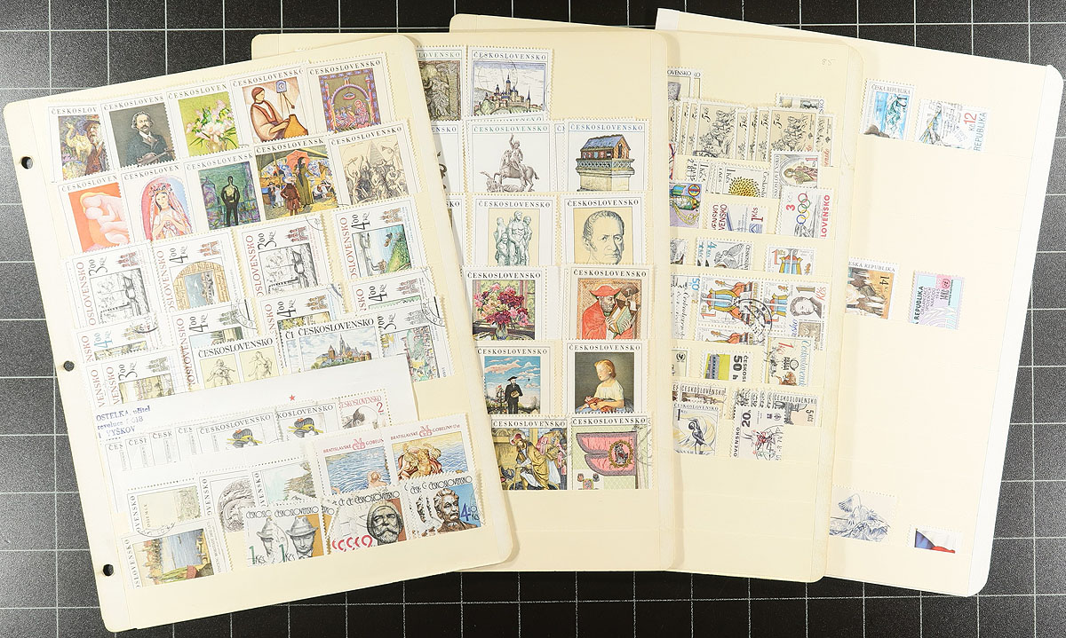 Accumulation of mint and used Czechoslovakia, 1918-1988, containing a few thousand stamps in roughly 100 homemade and stock pages. A spot check indicated mostly used material, including a few perfins from 1918 up to 1960, with a mixture of mint and used material from the 1960's to the 1980's, noting several sets and souvenir sheets. Owner's older Scott catalogue value for the lot in excess of US$450.00, leaving finds, including better postmarks, to the dedicated collector. Overall fine to very fine. Estimate =