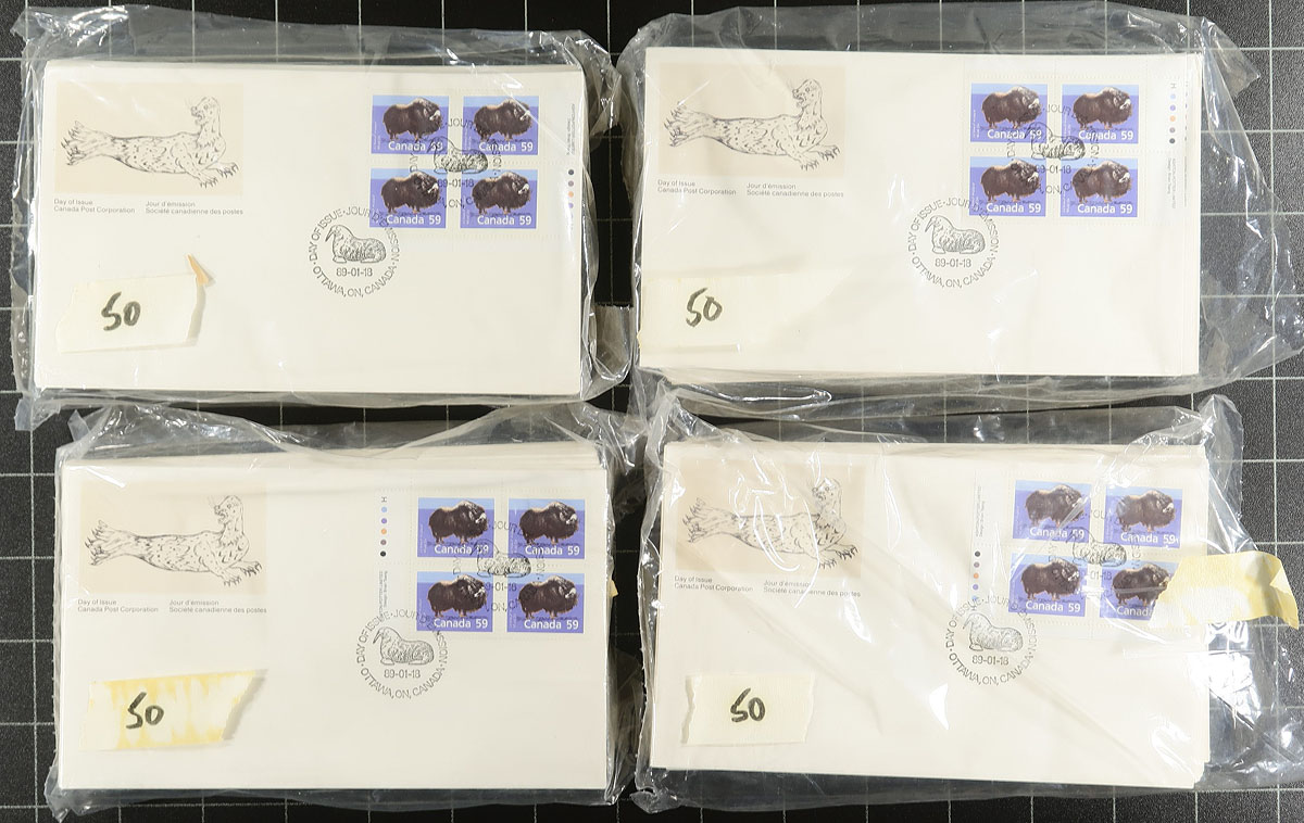 First Day Covers. Nice group of 200 first day covers with Unitrade #1174 Musk Ox from the popular Mammals series. A nice bulk lot for first day cover collectors or dealers looking for stock. Estimate =