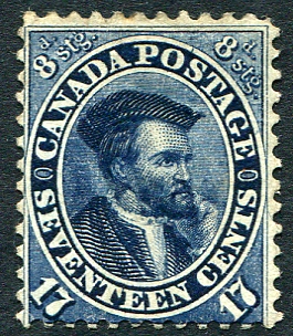 Vibrantly fresh and Fine mint no gum example of the 17c blue Cartier from the 1859 "First Cents" series. Great colour. 2025 Scott US$1,100.00 =