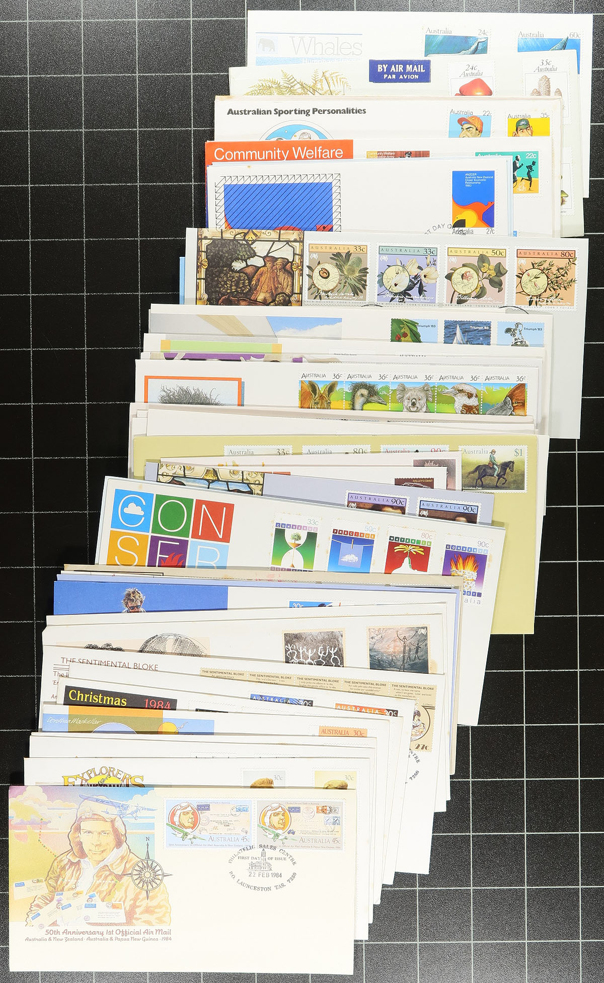 First Day Covers. A bundle of over 250, mostly different and 90% unaddressed Australia Post cachets from 1983-2000, with strong coverage in a few areas (e.g. 1995, 1997, 2000) including better values (saw the $10 "Devil’s Marbles" issue). Includes some souvenir sheets and a bit of Antarctic Territory, Frama, etc. A touch of duplication. A few of the early 1980's covers have minor tone spots. Substantial original cost and current catalogue value. Estimate =
