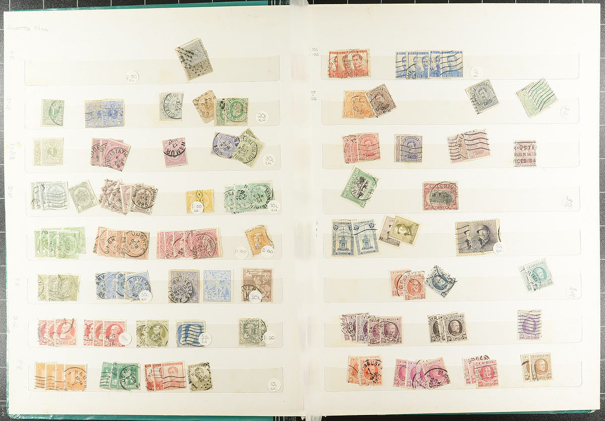 Eight assorted albums and stockbooks with a wide range of mostly used materials from the 1850's to about 2008. From a local estate, each one of these volumes at one time was its own bidboard lot and the collector never got around to processing them. As well as the usual run of "regular issues" we saw several pockets of pre-cancels, German occupation issues and lots of railway/parcel stamps. There is lots of overlap, so light to moderate duplication is to be expected amongst the thousands of stamps. We noted a number of nice cancels throughout. There is lots to work through here. Estimate =
