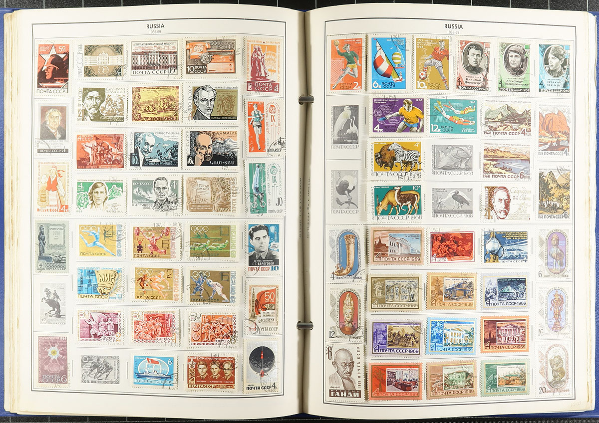 A holding of albums and stamps. The albums may have the most value in this banker’s box. There are two green 2-post Scott Specialty albums covering 1969-1991 with regular pages with (poorly) added black mounts - which likely can be replaced by a patient collector (binders worth about $100.00). The next album is a Ka-Be brand album with hingeless pages covering 1992-2002 in a magnificent, generic springback binder (the retail on the album and pages is likely over $500.00 if you can find them!). Both albums have no stamps. Fortunately, the rest of the lot can help with that, noting a group of 1952-1957 Minkus pages with 174 used stamps (cat around $150.00). A large stockbook has a wholesale accumulation of mint 1970's-1990's sets and souvenir sheets (catalogue around $300.00), finishing with a 20th century collection of used on Harris pages and a small stockbook of mint 1960's issues. Estimate =