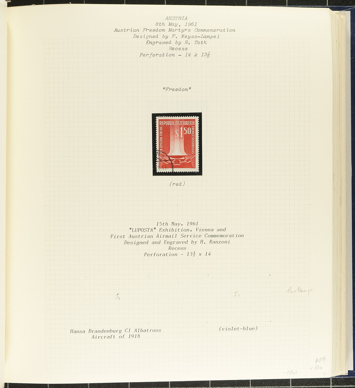 Bundle of 4 distinctive holdings of Austria. A Stanley Gibbons "Devon" album has a 1850's-1970's with a mixed collection of mint and used with some nice "back of the book". There is a couple of folders and a stockbook with a duplicated (often 8 of a type) run of 1960's regular airmail and semi-postal issues, with miniature panes and souvenir sheets. The lot concludes with a Davo album (with slipcase) and 51 different mint hinged/never hinged souvenir sheets from 1972-2009 (the modern items have a face value of €118.70 = C$193.00), plus an album that retails at about $150.00! The balance of a local estate. Estimate =