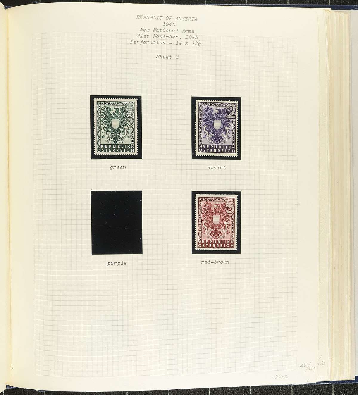 Bundle of 4 distinctive holdings of Austria. A Stanley Gibbons "Devon" album has a 1850's-1970's with a mixed collection of mint and used with some nice "back of the book". There is a couple of folders and a stockbook with a duplicated (often 8 of a type) run of 1960's regular airmail and semi-postal issues, with miniature panes and souvenir sheets. The lot concludes with a Davo album (with slipcase) and 51 different mint hinged/never hinged souvenir sheets from 1972-2009 (the modern items have a face value of €118.70 = C$193.00), plus an album that retails at about $150.00! The balance of a local estate. Estimate =