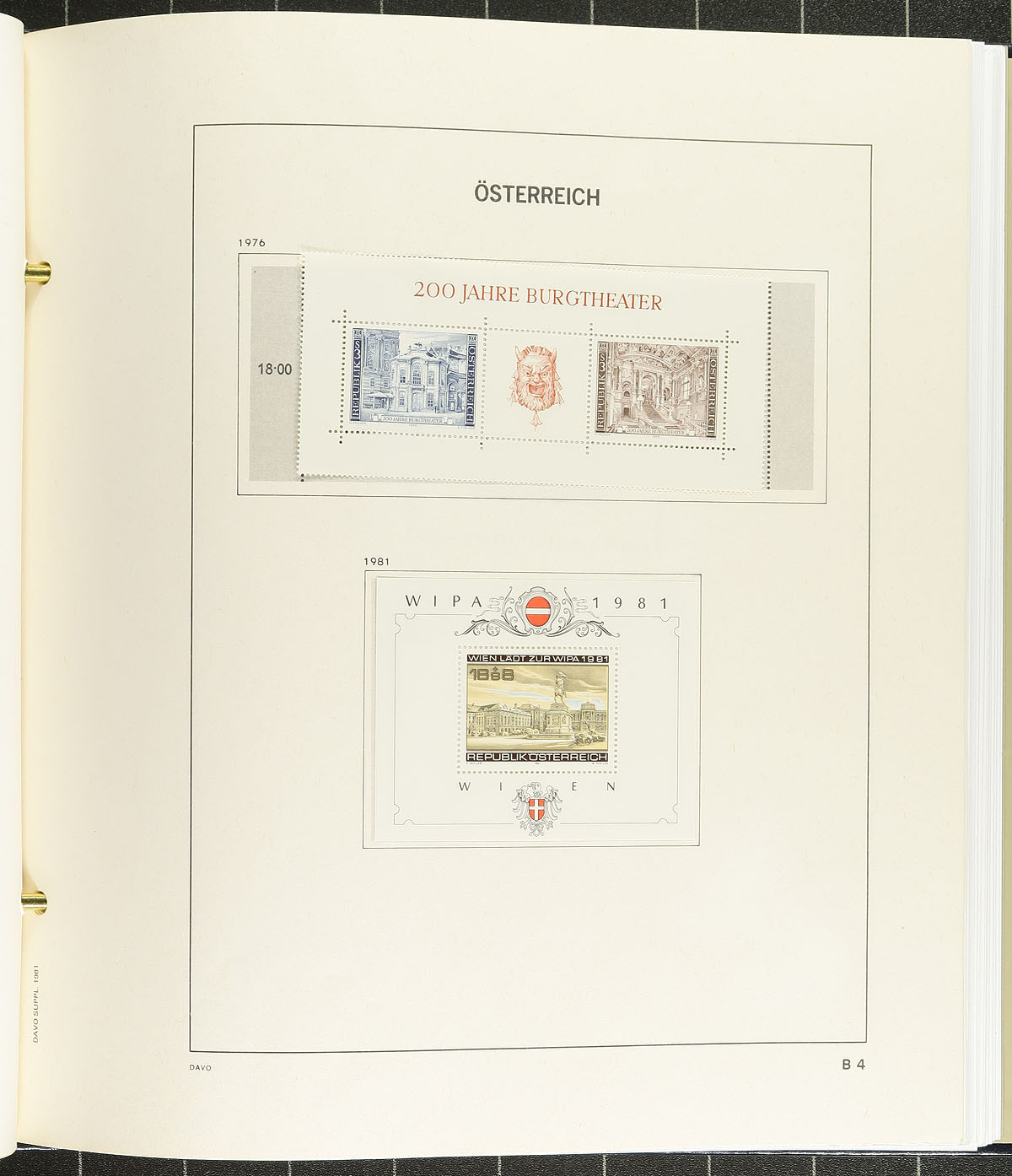 Bundle of 4 distinctive holdings of Austria. A Stanley Gibbons "Devon" album has a 1850's-1970's with a mixed collection of mint and used with some nice "back of the book". There is a couple of folders and a stockbook with a duplicated (often 8 of a type) run of 1960's regular airmail and semi-postal issues, with miniature panes and souvenir sheets. The lot concludes with a Davo album (with slipcase) and 51 different mint hinged/never hinged souvenir sheets from 1972-2009 (the modern items have a face value of €118.70 = C$193.00), plus an album that retails at about $150.00! The balance of a local estate. Estimate =