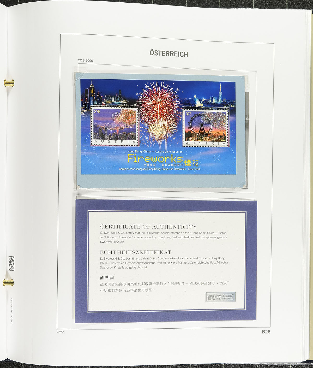 Bundle of 4 distinctive holdings of Austria. A Stanley Gibbons "Devon" album has a 1850's-1970's with a mixed collection of mint and used with some nice "back of the book". There is a couple of folders and a stockbook with a duplicated (often 8 of a type) run of 1960's regular airmail and semi-postal issues, with miniature panes and souvenir sheets. The lot concludes with a Davo album (with slipcase) and 51 different mint hinged/never hinged souvenir sheets from 1972-2009 (the modern items have a face value of €118.70 = C$193.00), plus an album that retails at about $150.00! The balance of a local estate. Estimate =