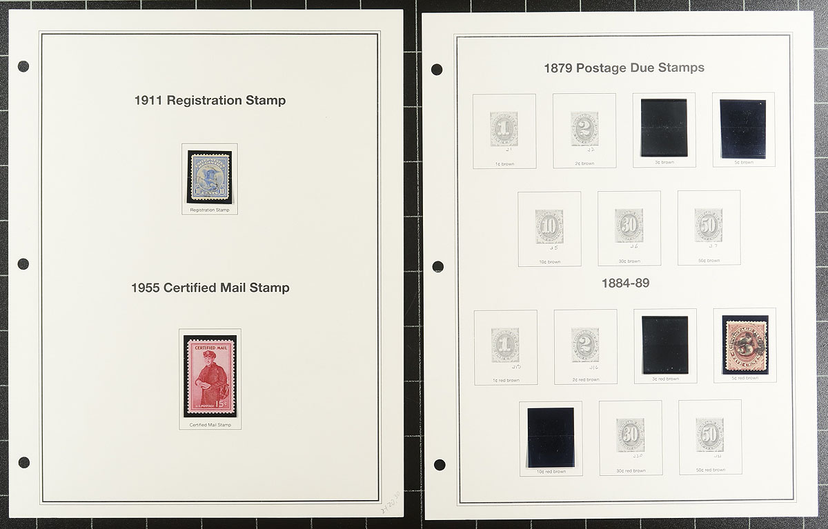 A "back of the book" mint and used holding, the balance of an estate. There is an assortment of mounted pages and a couple of stockpages. Besides the standard airmail (with a Lindberg booklet pane), postage due (including some nice mint red dues), special delivery issues, there is some revenues, coil testing pairs, postal savings stamps, precancels, even a couple of minor errors. Some significant catalogue value here, and other value possibilities there, make this an interesting lot. Estimate =