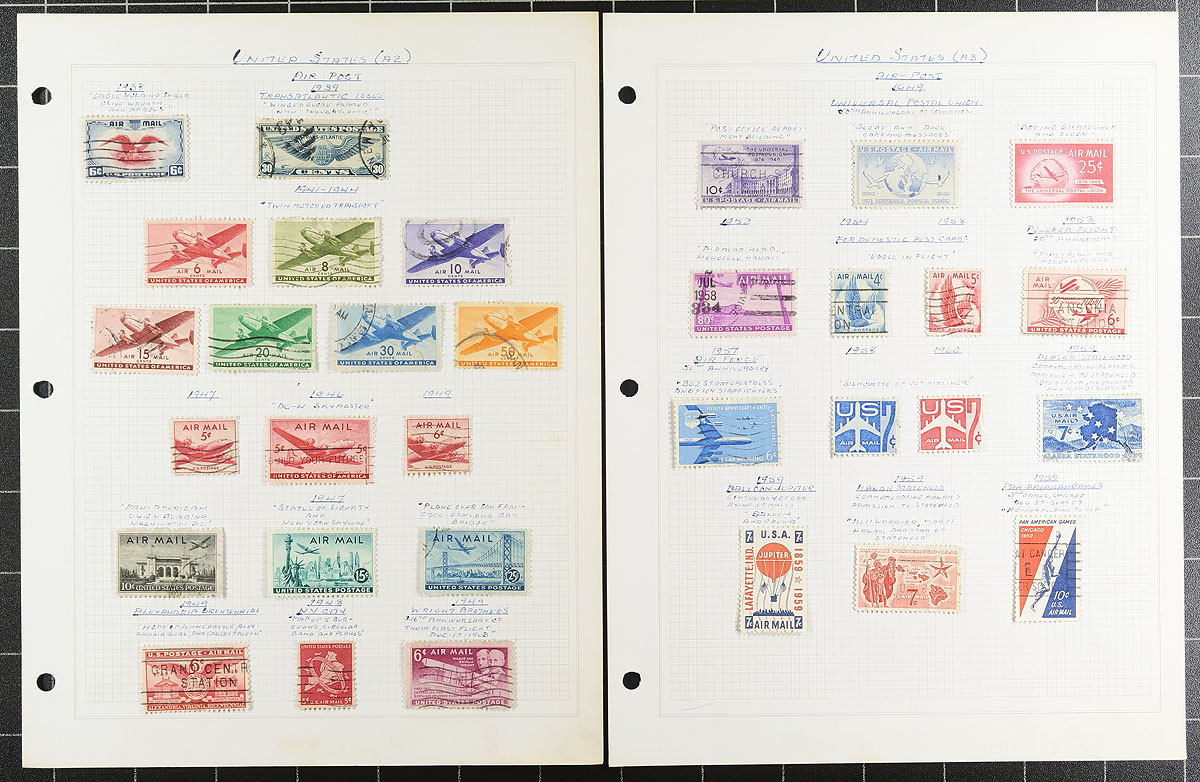 A "back of the book" mint and used holding, the balance of an estate. There is an assortment of mounted pages and a couple of stockpages. Besides the standard airmail (with a Lindberg booklet pane), postage due (including some nice mint red dues), special delivery issues, there is some revenues, coil testing pairs, postal savings stamps, precancels, even a couple of minor errors. Some significant catalogue value here, and other value possibilities there, make this an interesting lot. Estimate =