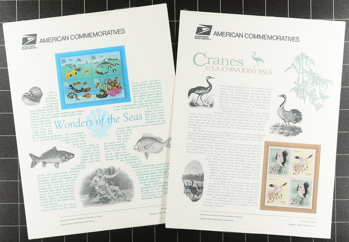 Mixed mint assortment in a mint sheet file. Part 1 is from the first half of the 20th century with better singles and a couple of minor errors (easily a couple of hundred dollars of catalogue value here). Part 2 is mostly sheetlets and booklets from 1975 to 1999, including birds, musicians, Bicentennial etc. (these have a face value of US$176.00+). A bit of mixed condition, but great for a collection builder or use as postage with some good leftovers. Estimate =