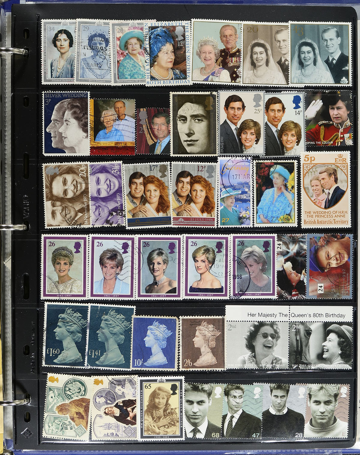 A dozen albums, binders, clutches/bundles of mostly used material from the late Victorian era to about 2012. Includes collections, accumulations, unsorted material, with mild to heavy duplication. While there is a bit of better earlier items, the majority are KGVI-QEII, with only a bit of Machin and only a bit of Regional material. There are volumes which are all definitives, others which are all commemoratives. From several different sources, each of these volumes were once a bidboard at a BC auction house, but the collector never got around to sorting these out. There are thousands of stamps and plenty of catalogue value here. There could be better items sitting here awaiting discovery, and you will have hours of fun looking. Fills a bankers box to its limit. Estimate =