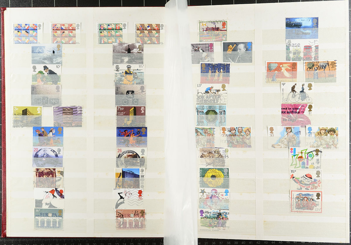 A dozen albums, binders, clutches/bundles of mostly used material from the late Victorian era to about 2012. Includes collections, accumulations, unsorted material, with mild to heavy duplication. While there is a bit of better earlier items, the majority are KGVI-QEII, with only a bit of Machin and only a bit of Regional material. There are volumes which are all definitives, others which are all commemoratives. From several different sources, each of these volumes were once a bidboard at a BC auction house, but the collector never got around to sorting these out. There are thousands of stamps and plenty of catalogue value here. There could be better items sitting here awaiting discovery, and you will have hours of fun looking. Fills a bankers box to its limit. Estimate =
