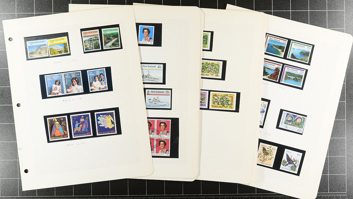 1960's-1990's mint and used collection (sometimes mint, sometimes used, sometimes both). All neatly mounted in black mounts on quadrilled pages. Quite complete throughout this time period (there is a bit of earlier 20th century, which we have not counted). Better mint includes £1 pink geyser, 2 sets of the $4-$10 "Arms", some blocks, better values such as the $10 Kiwi, a couple of complete booklets and even a bit of Tokelau and Ross Dependency, but no "health" semi-postals. The face value of the 1980's onward material is about NZ$200.00. Estimate =