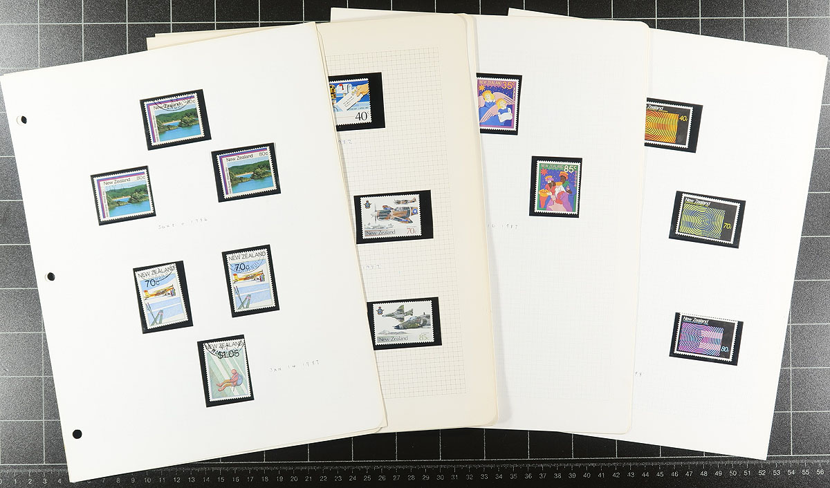 1960's-1990's mint and used collection (sometimes mint, sometimes used, sometimes both). All neatly mounted in black mounts on quadrilled pages. Quite complete throughout this time period (there is a bit of earlier 20th century, which we have not counted). Better mint includes £1 pink geyser, 2 sets of the $4-$10 "Arms", some blocks, better values such as the $10 Kiwi, a couple of complete booklets and even a bit of Tokelau and Ross Dependency, but no "health" semi-postals. The face value of the 1980's onward material is about NZ$200.00. Estimate =