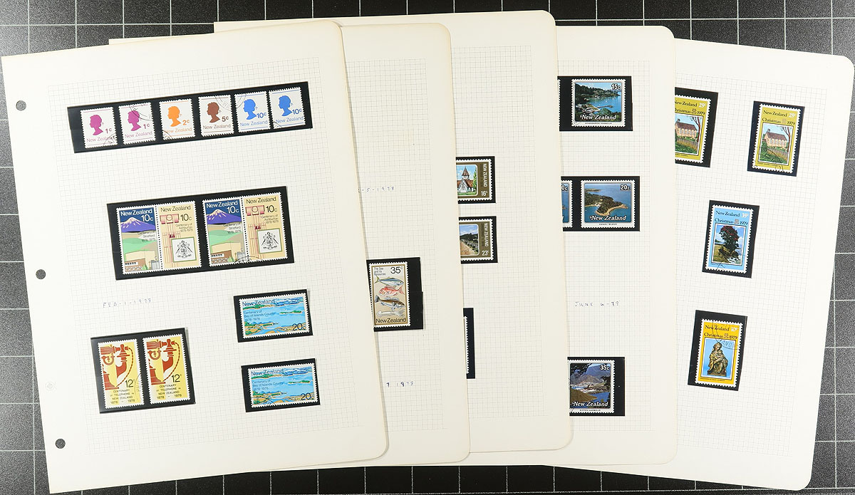 1960's-1990's mint and used collection (sometimes mint, sometimes used, sometimes both). All neatly mounted in black mounts on quadrilled pages. Quite complete throughout this time period (there is a bit of earlier 20th century, which we have not counted). Better mint includes £1 pink geyser, 2 sets of the $4-$10 "Arms", some blocks, better values such as the $10 Kiwi, a couple of complete booklets and even a bit of Tokelau and Ross Dependency, but no "health" semi-postals. The face value of the 1980's onward material is about NZ$200.00. Estimate =