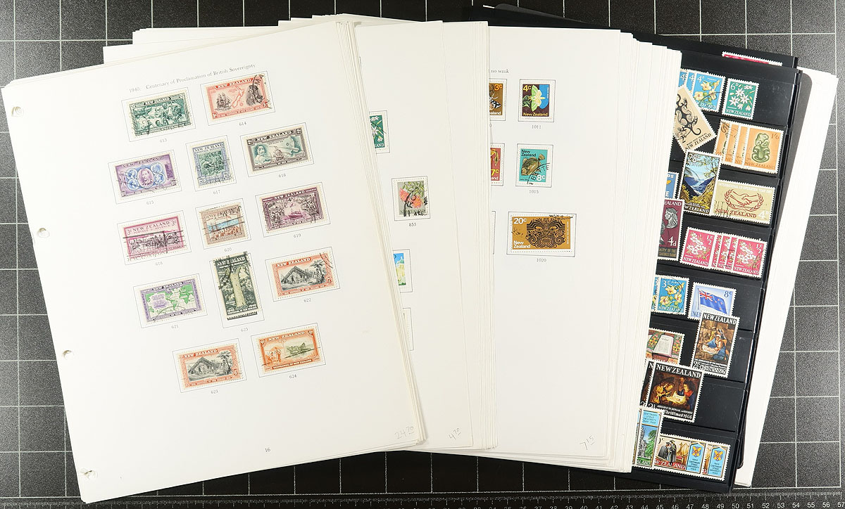 Two New Zealand collections that will merge together nicely. A mix of mint and used. One is housed in a nice Stanley Gibbons 4-ring album with 1940-1979 pages (plus a few stocksheets seeing stamps that run into the early 2000's). The second binder has a broader collection with a bit of Queen Victoria and issues to about 1992. There are some souvenir sheets (with a couple of health), some complete booklets, $10 Kiwi (mint, used, Specimen), some back of the book, such as postal fiscals, Ross Dependency, etc. There will be duplication between the two collections. Owner’s conservative catalogue value US$1500.00 =