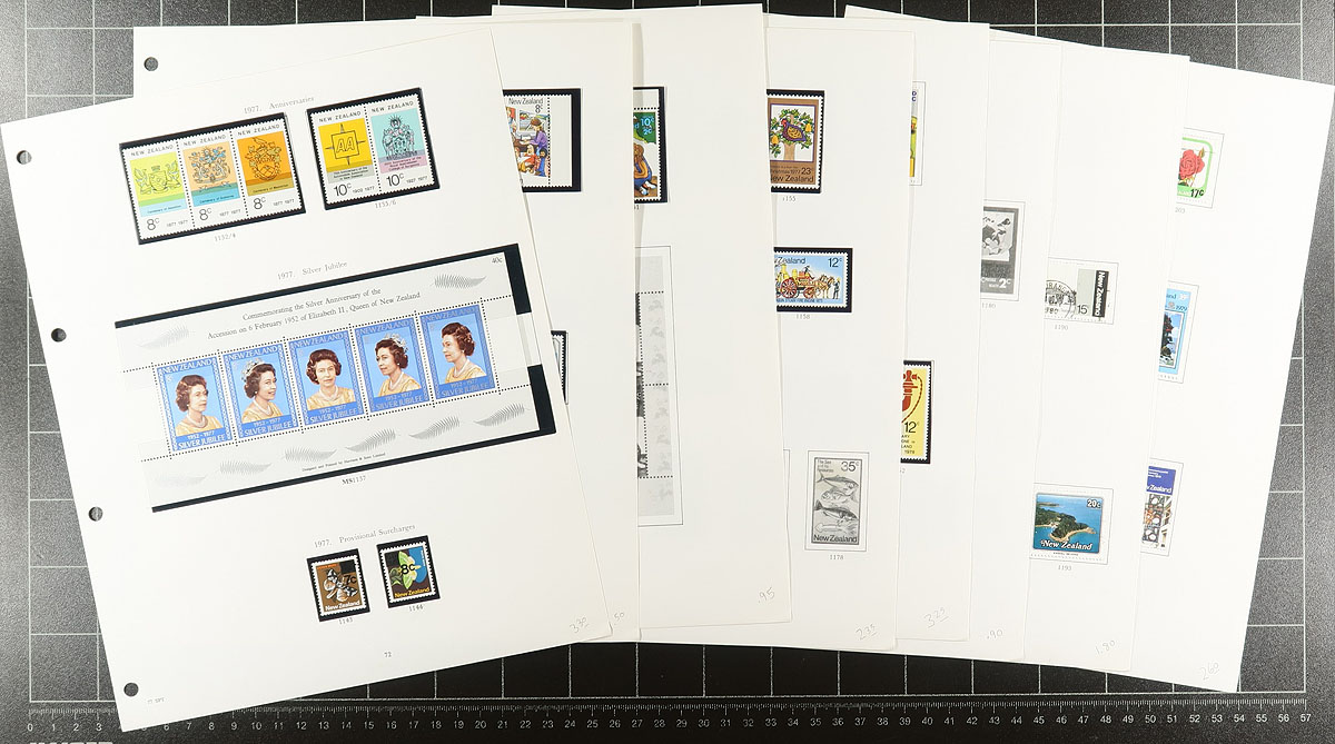 Two New Zealand collections that will merge together nicely. A mix of mint and used. One is housed in a nice Stanley Gibbons 4-ring album with 1940-1979 pages (plus a few stocksheets seeing stamps that run into the early 2000's). The second binder has a broader collection with a bit of Queen Victoria and issues to about 1992. There are some souvenir sheets (with a couple of health), some complete booklets, $10 Kiwi (mint, used, Specimen), some back of the book, such as postal fiscals, Ross Dependency, etc. There will be duplication between the two collections. Owner’s conservative catalogue value US$1500.00 =