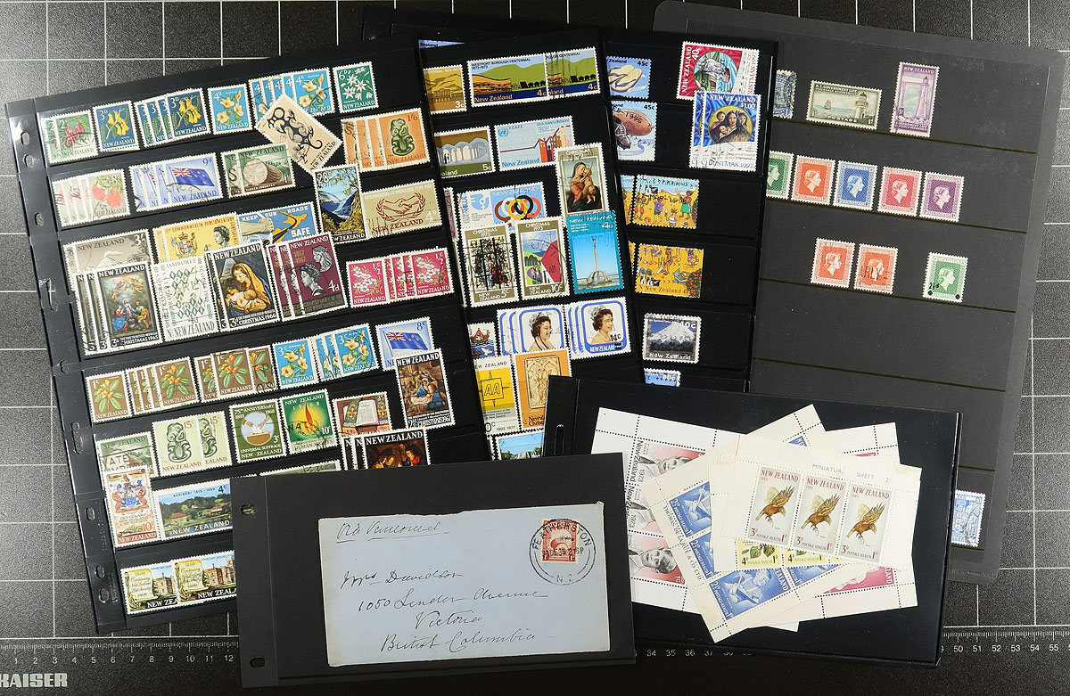 Two New Zealand collections that will merge together nicely. A mix of mint and used. One is housed in a nice Stanley Gibbons 4-ring album with 1940-1979 pages (plus a few stocksheets seeing stamps that run into the early 2000's). The second binder has a broader collection with a bit of Queen Victoria and issues to about 1992. There are some souvenir sheets (with a couple of health), some complete booklets, $10 Kiwi (mint, used, Specimen), some back of the book, such as postal fiscals, Ross Dependency, etc. There will be duplication between the two collections. Owner’s conservative catalogue value US$1500.00 =