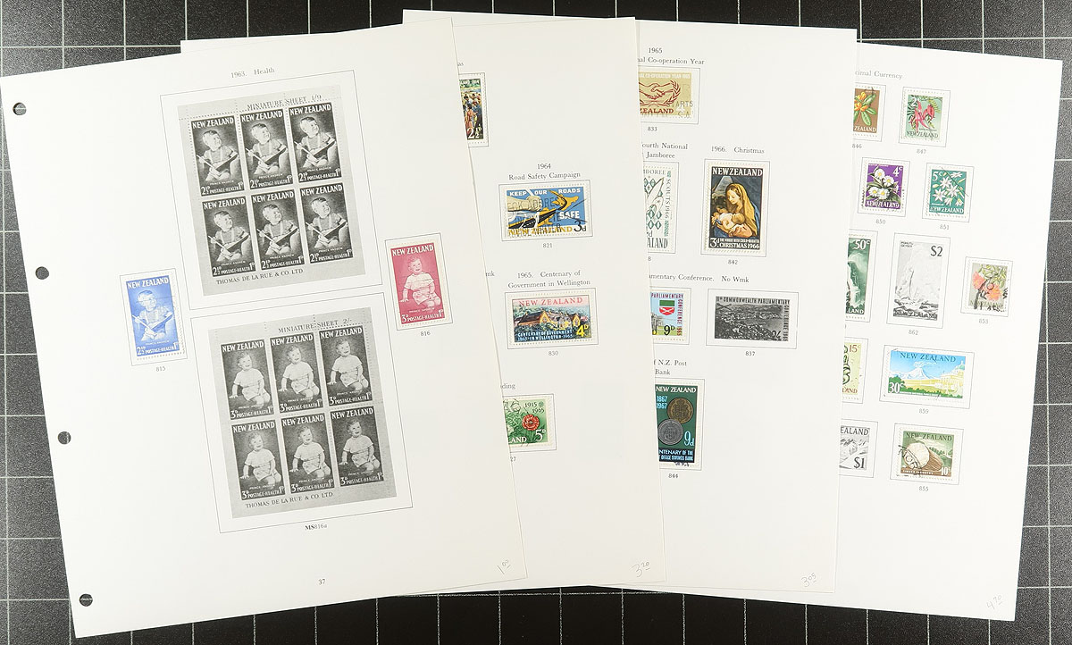 Two New Zealand collections that will merge together nicely. A mix of mint and used. One is housed in a nice Stanley Gibbons 4-ring album with 1940-1979 pages (plus a few stocksheets seeing stamps that run into the early 2000's). The second binder has a broader collection with a bit of Queen Victoria and issues to about 1992. There are some souvenir sheets (with a couple of health), some complete booklets, $10 Kiwi (mint, used, Specimen), some back of the book, such as postal fiscals, Ross Dependency, etc. There will be duplication between the two collections. Owner’s conservative catalogue value US$1500.00 =