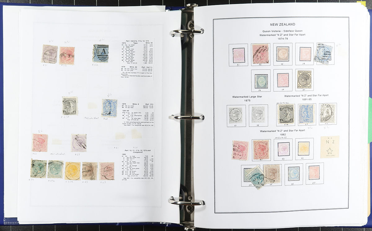 Computer generated album pages from 1855 to 2005 containing regular issues plus "Back of the Book". The stamps go from 1874 to 2005. Regular issues with 1,131 stamps catalogued by Scott in 2015 at US$1,151.35 and "Back of the Book" having 169 stamps cataloguing US$208.55. Damaged stamps not counted. Mostly used but some mint also. Many complete sets. Please note while looking at the scanned images that colour photocopies of stamps on the pages are also abundant. This makes it difficult to examine the lot online. This lot comes with bonus material, being a group of Scott Specialty pages with an assortment of pre-1975 issues and a binder with homemade pages with a nice range of Health issues (no souvenir sheets) and Christmas issues up to 1999, both of which hold surprising catalogue value. Estimate =
