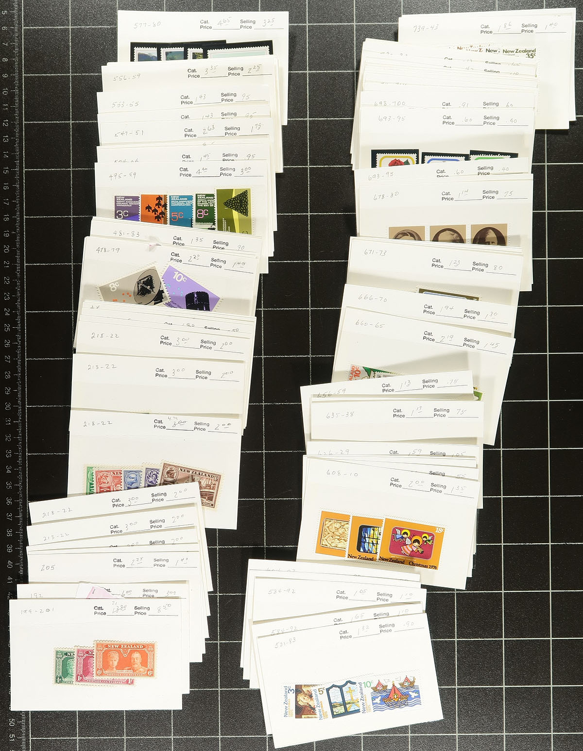 Stanley Gibbons padded red binder with pages up to 1983 with a good, mostly used, collection, including some health souvenir sheets (some mint, a couple used). This lot comes with bonus material in the form of three mounted collections, also a mix of mint and used. Some on Gibbons pages, others on homemade pages, the best being 10 mint "coil counter" pairs of the King George VI definitives (mint CP catalogue value NZ$170.00), with some Tokelau, even a couple of covers. If that isn’t enough, there is two bundles of old dealer "102" cards with a couple of hundred dollars of catalogue value throughout the 20th century. Happy hunting. Estimate =