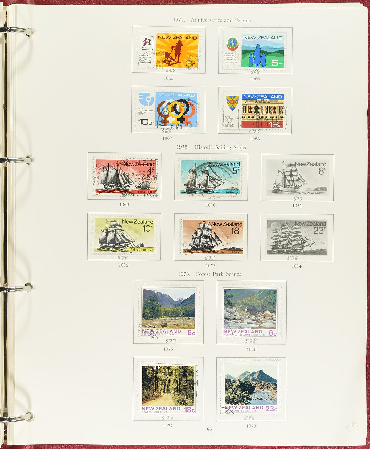 Stanley Gibbons padded red binder with pages up to 1983 with a good, mostly used, collection, including some health souvenir sheets (some mint, a couple used). This lot comes with bonus material in the form of three mounted collections, also a mix of mint and used. Some on Gibbons pages, others on homemade pages, the best being 10 mint "coil counter" pairs of the King George VI definitives (mint CP catalogue value NZ$170.00), with some Tokelau, even a couple of covers. If that isn’t enough, there is two bundles of old dealer "102" cards with a couple of hundred dollars of catalogue value throughout the 20th century. Happy hunting. Estimate =