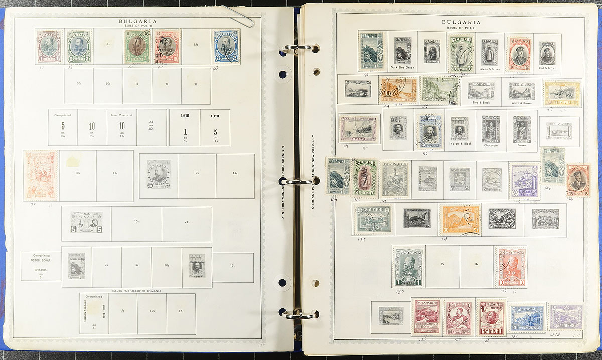 Europe-strong estate balance filling a bankers box. About half of the box is albums, stockbooks and binders with a range of multi-country offerings. The other half has one-country offerings (including a couple of nice albums), with Bulgaria, Romania, Vatican, Bohemia and Moravia. Many of these volumes were once individual bidboard lots, with catalogue values ranging from $150-$400 each, generally 15-20 years. Thousands of stamps here plus some good value amongst the albums. Offered as received. Estimate =
