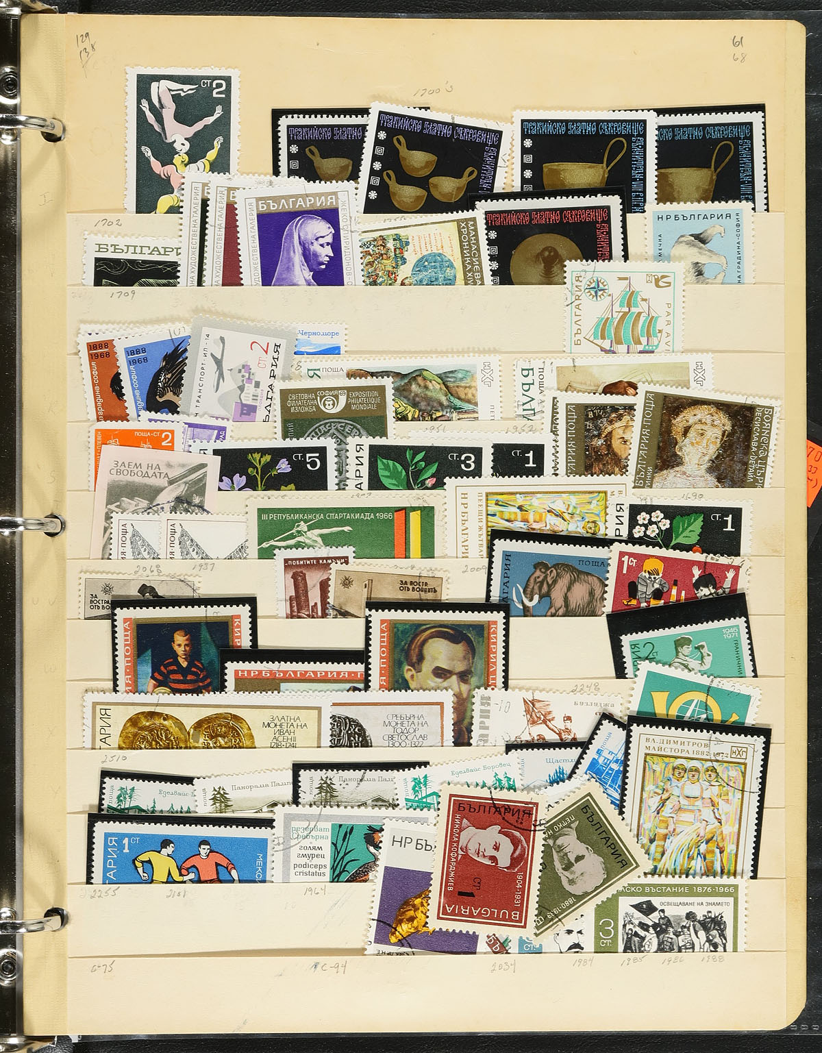 Europe-strong estate balance filling a bankers box. About half of the box is albums, stockbooks and binders with a range of multi-country offerings. The other half has one-country offerings (including a couple of nice albums), with Bulgaria, Romania, Vatican, Bohemia and Moravia. Many of these volumes were once individual bidboard lots, with catalogue values ranging from $150-$400 each, generally 15-20 years. Thousands of stamps here plus some good value amongst the albums. Offered as received. Estimate =