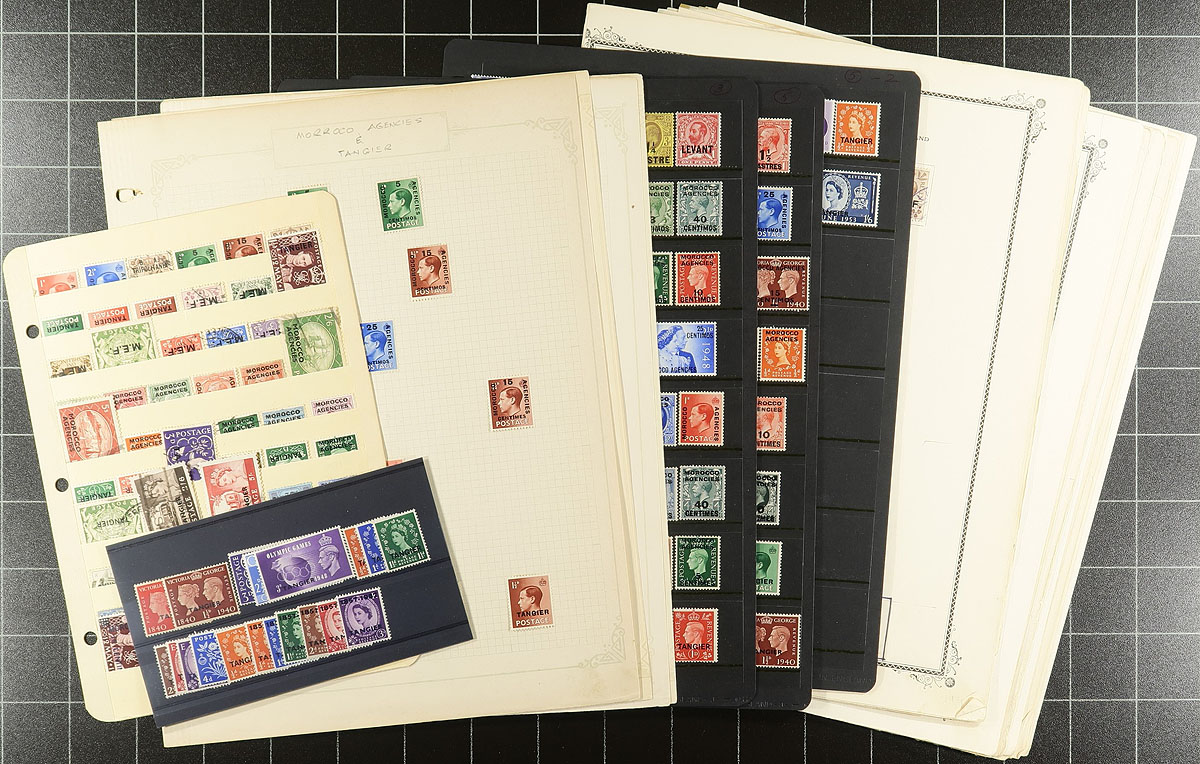 A series of "samplers" either on album pages or stockpages from this very popular collecting area. There are a few hundred mint (with some used) issues overprinted for use in British colonies in Africa, and the Levant. Strongest are the MEF, Eritrea, Somalia, Tripolitania, Morocco Agencies, Tangier, and Turkish offices. Expect the overall condition to be quite good, with the mint being hinged. As these pages are from different sources, some duplication is to be expected. Owner’s estimated (and conservative) 2024 Scott US$650.00 =