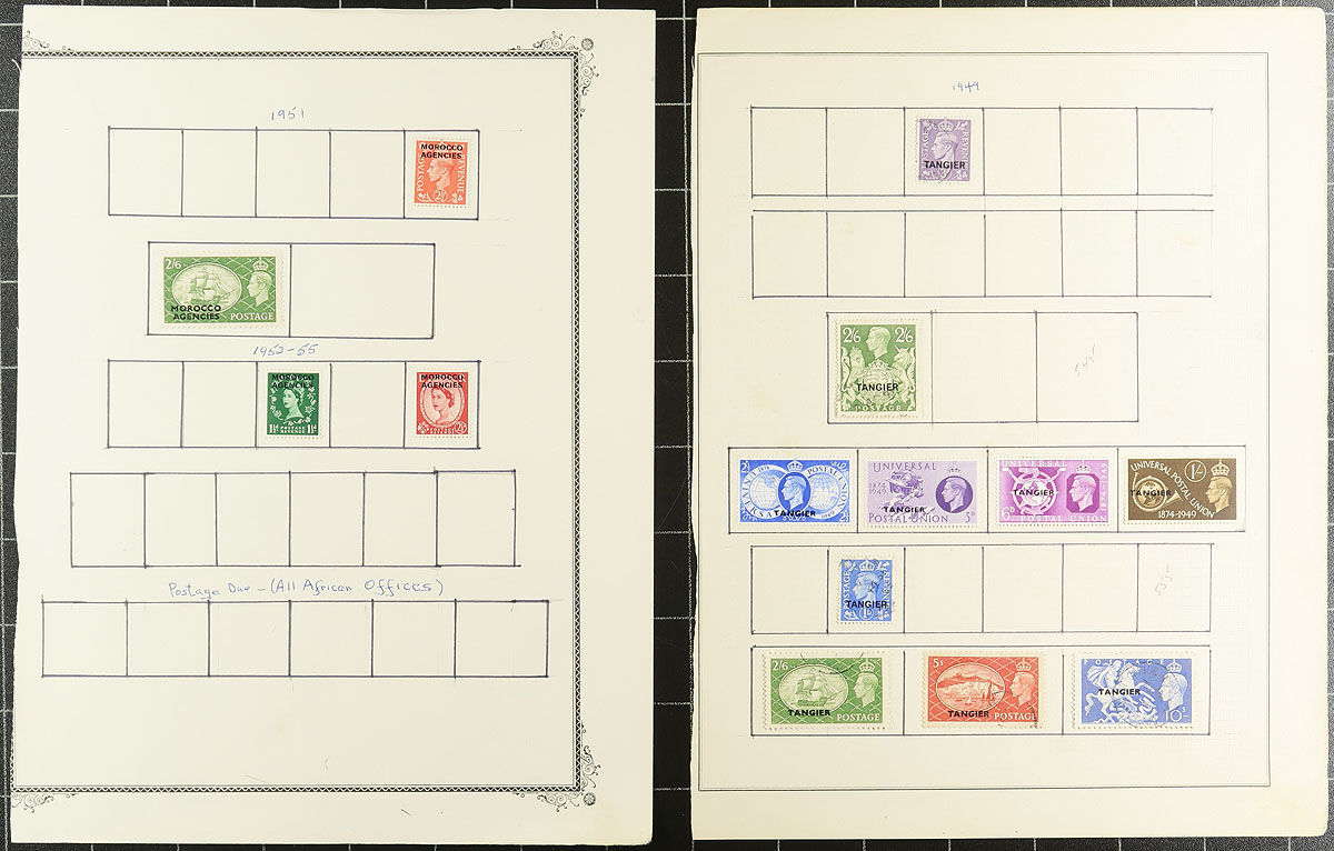 A series of "samplers" either on album pages or stockpages from this very popular collecting area. There are a few hundred mint (with some used) issues overprinted for use in British colonies in Africa, and the Levant. Strongest are the MEF, Eritrea, Somalia, Tripolitania, Morocco Agencies, Tangier, and Turkish offices. Expect the overall condition to be quite good, with the mint being hinged. As these pages are from different sources, some duplication is to be expected. Owner’s estimated (and conservative) 2024 Scott US$650.00 =