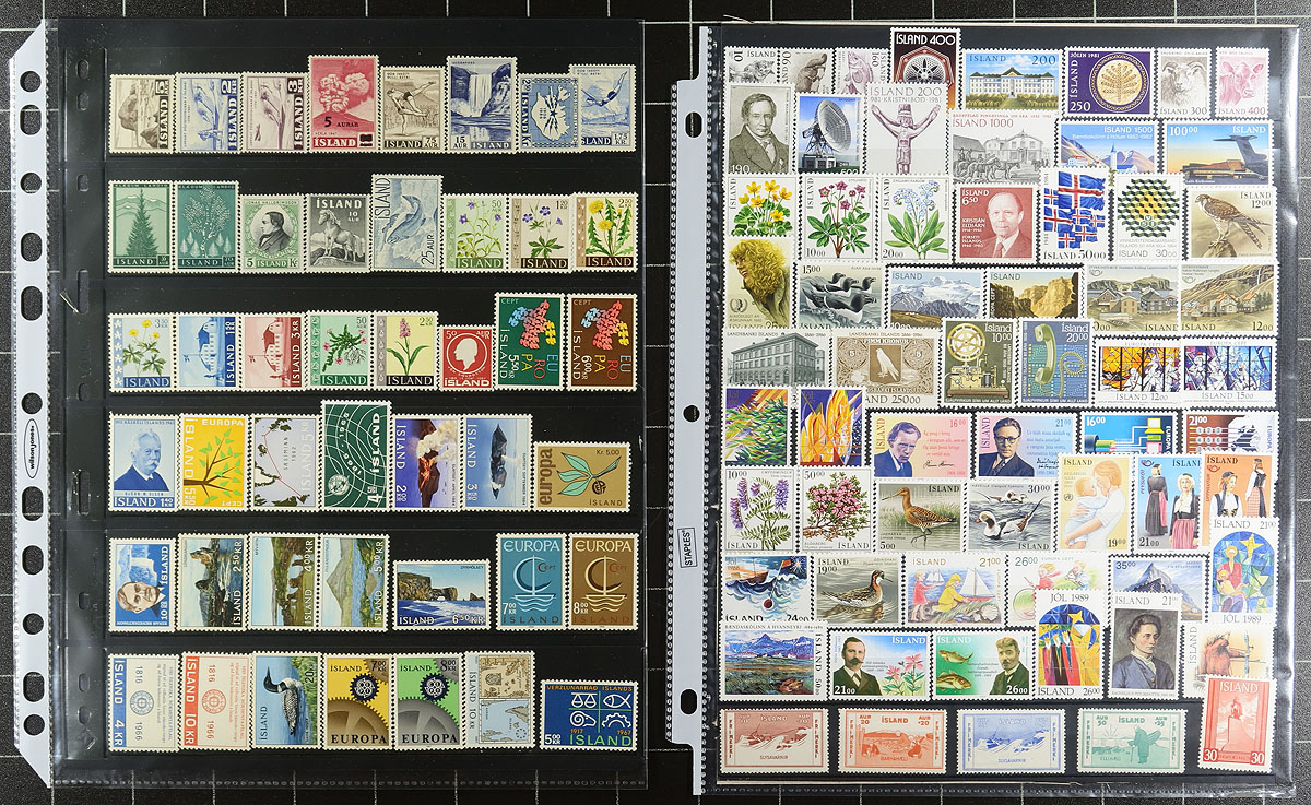 Part 5: An all-mint selection from the collector who loved Iceland. Several stockpages and cards were all bought from various bidboards and then never touched. Includes singles from the "Kings", "Parliament", "Geyser" issues, a couple of souvenir sheets, several complete booklets from the early 2000's (with both outrageous face value and catalogue value), two panes of Bird semi-postals, a "1931 Zeppelin" overprint and two copies of the good airmail #C3. A bonus item is an embroidered WWII era handkerchief. Expect a small amount of duplication. Owner’s conservative Scott US$1100.00 =