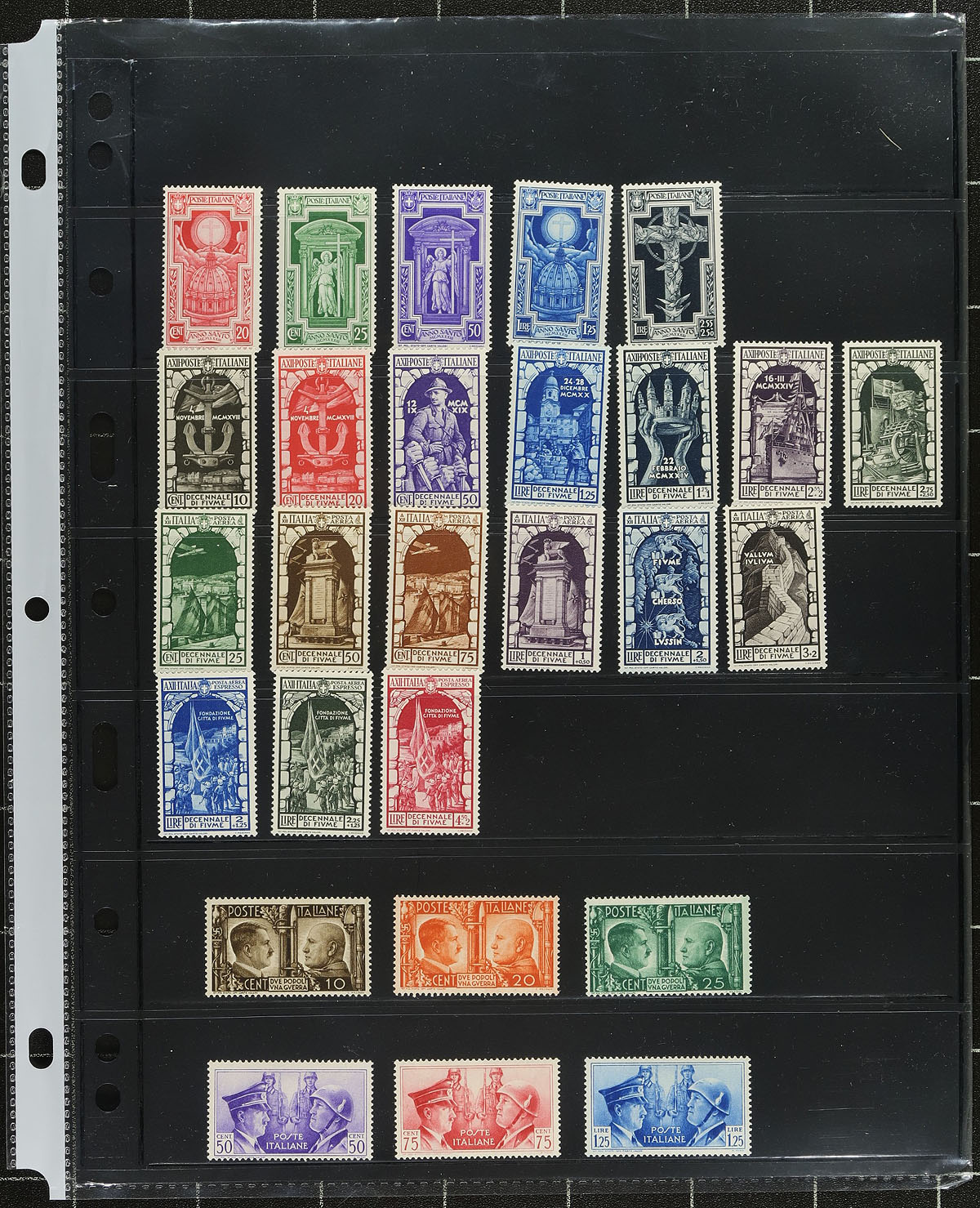 Estate holding #1: The mint portion (although a few used stamps have snuck in), with good distribution of stamps throughout the 20th century, including back of the book, such as AMG Trieste overprints, a nice Italian Somaliland postage due #J14a (overprint at the bottom - cat $170.00). A couple of bonus items are a page of colourful Roman reprint/forgeries and an interesting greeting card wishing Victory in 1945 using Italian & colonial stamps. There could be a few faults and a touch of duplication, but this is a great way to build a collection. Estimate =