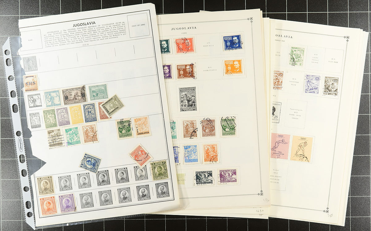 A bundle of mint, used and unusual material the contents of a local estate. There is a small amount of better mint (sets and semi-postals) on #102 cards, some 1970's-1990's sheetlets and souvenir sheets. Noted some old revenue stamps, and four or five extracts from collections (unchecked by us) - there could be a touch of Serbia in here. There are even a couple of modern maxi-cards. Offered as received. Estimate =