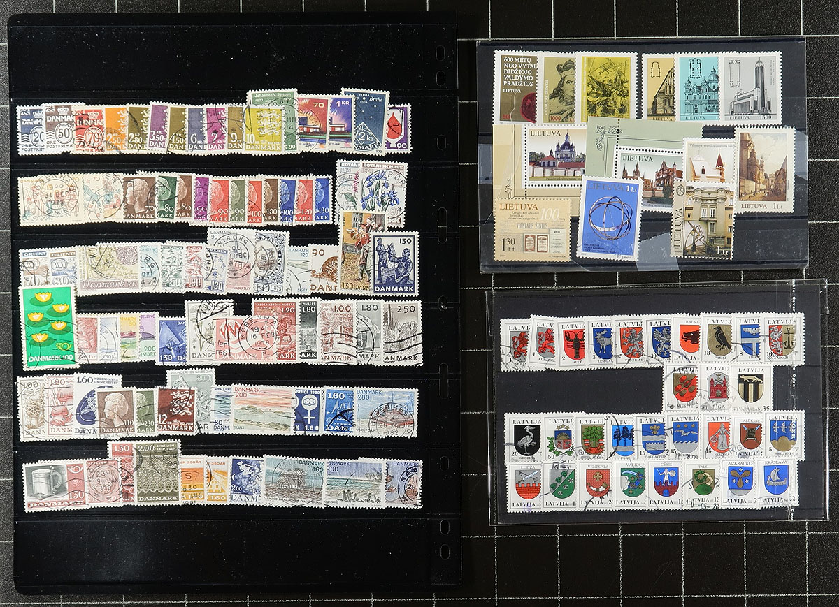 Not your usual European assortment, the balance of a local estate. In alphabetical order, we saw Denmark (a stockpage of used), Gibraltar (KGV and KGVI perf varieties, and Millennium booklet), Greenland (a couple of year folders and a couple of mint blocks), Heligoland (a page of presumed dubious Queen Victoria issues), Latvia and Lithuania (an assortment of each including both inter-war and post-USSR). The value adds up quickly. Estimate =