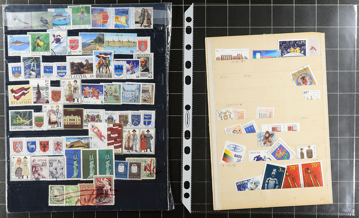 Not your usual European assortment, the balance of a local estate. In alphabetical order, we saw Denmark (a stockpage of used), Gibraltar (KGV and KGVI perf varieties, and Millennium booklet), Greenland (a couple of year folders and a couple of mint blocks), Heligoland (a page of presumed dubious Queen Victoria issues), Latvia and Lithuania (an assortment of each including both inter-war and post-USSR). The value adds up quickly. Estimate =