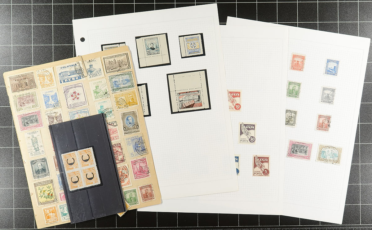 Latin America Bundle #1: From a local estate, where this collector bought everything that suited his fancy and then left them untouched. Bidboard lots, album pages, dealer cards, with a range of mint and used, with some back of the book and the occasional "weird" item. We note Venezuela (with a good batch of used air mails, a nice page of mint "earlies"), Uruguay (a duo with Bileski-promoted inverts, a 1956 FD folder, some revenues), Peru, Paraguay, Ecuador, Colombia (with a collection on Scott Specialty pages up to 1981). Some better material mixed in among the common. Fun and value here! Estimate =