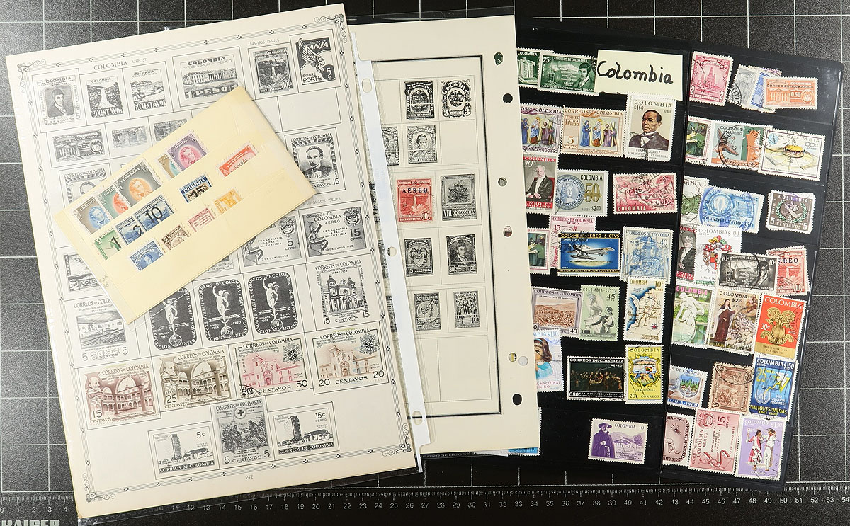 Latin America Bundle #1: From a local estate, where this collector bought everything that suited his fancy and then left them untouched. Bidboard lots, album pages, dealer cards, with a range of mint and used, with some back of the book and the occasional "weird" item. We note Venezuela (with a good batch of used air mails, a nice page of mint "earlies"), Uruguay (a duo with Bileski-promoted inverts, a 1956 FD folder, some revenues), Peru, Paraguay, Ecuador, Colombia (with a collection on Scott Specialty pages up to 1981). Some better material mixed in among the common. Fun and value here! Estimate =