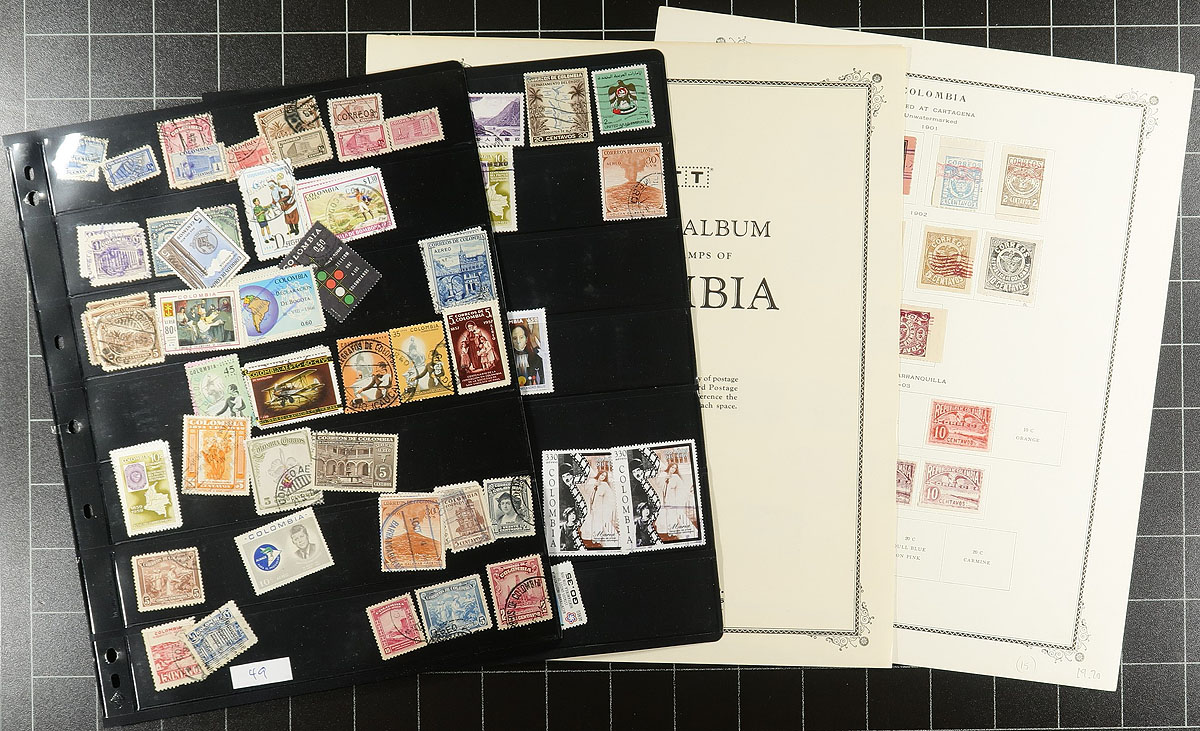 Latin America Bundle #1: From a local estate, where this collector bought everything that suited his fancy and then left them untouched. Bidboard lots, album pages, dealer cards, with a range of mint and used, with some back of the book and the occasional "weird" item. We note Venezuela (with a good batch of used air mails, a nice page of mint "earlies"), Uruguay (a duo with Bileski-promoted inverts, a 1956 FD folder, some revenues), Peru, Paraguay, Ecuador, Colombia (with a collection on Scott Specialty pages up to 1981). Some better material mixed in among the common. Fun and value here! Estimate =