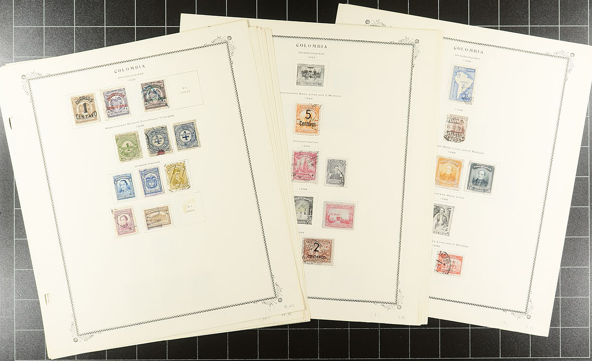 Latin America Bundle #1: From a local estate, where this collector bought everything that suited his fancy and then left them untouched. Bidboard lots, album pages, dealer cards, with a range of mint and used, with some back of the book and the occasional "weird" item. We note Venezuela (with a good batch of used air mails, a nice page of mint "earlies"), Uruguay (a duo with Bileski-promoted inverts, a 1956 FD folder, some revenues), Peru, Paraguay, Ecuador, Colombia (with a collection on Scott Specialty pages up to 1981). Some better material mixed in among the common. Fun and value here! Estimate =