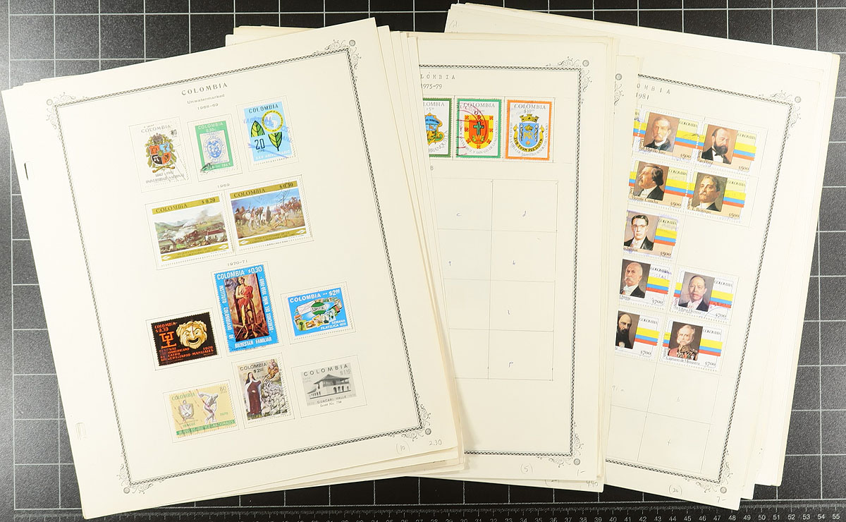 Latin America Bundle #1: From a local estate, where this collector bought everything that suited his fancy and then left them untouched. Bidboard lots, album pages, dealer cards, with a range of mint and used, with some back of the book and the occasional "weird" item. We note Venezuela (with a good batch of used air mails, a nice page of mint "earlies"), Uruguay (a duo with Bileski-promoted inverts, a 1956 FD folder, some revenues), Peru, Paraguay, Ecuador, Colombia (with a collection on Scott Specialty pages up to 1981). Some better material mixed in among the common. Fun and value here! Estimate =