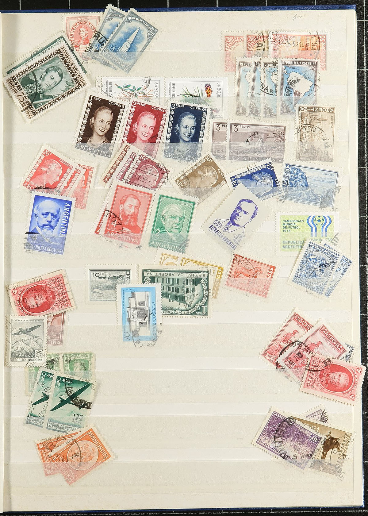 Latin America Bundle #2: From a local estate, where this collector bought everything that suited his fancy and then left them untouched. Bidboard lots, album pages, dealer cards, a range of mint and used, with some back of the book and the occasional "weird" item. We note Chile (1993 year folder, large blocks and panes of mostly airmail issues), Brazil (1967 Apparition souvenir sheet), Bolivia (a nice mounted collection), Argentina (a nice approval book, some large mint blocks), with the balance being several holdings of multi-country from South America (one is in a 32-page Lighthouse stockbook) Some better material mixed in among the common. Fun and value here! Estimate =