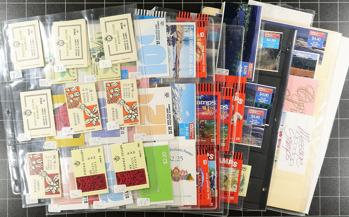 Queen Elizabeth II, 20th century, complete booklets. About 80 lightly duplicated, many identified by Campbell Paterson (noted 3 copies of W7b, NZ$45.00 each), and W8b ($95.00), with the 1990's issues having a face value of over NZN$150.00. Great to build your collection. Estimate =