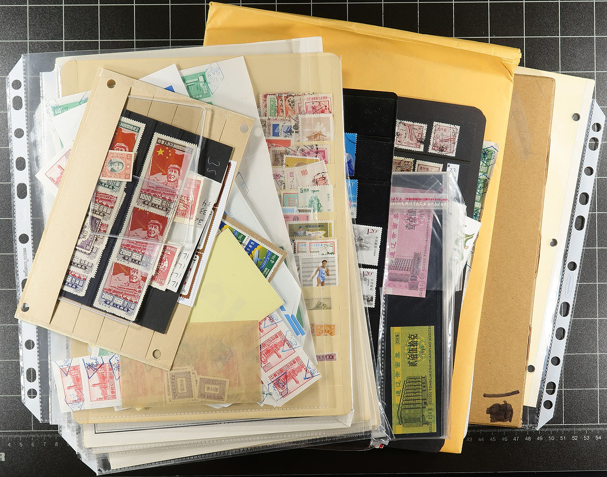 Bundled estate balance with a mix of China, Taiwan and People’s Republic issues. Bought from several sources and then never touched again. In no particular order, we noted a PRC 2000 yearbook, sheets of 32 of the 1997 paintings (#2749-2754), an accumulation of used "Gates of Harmony" issues and some non-postal reproductions and there are even a few ration stamps and some First Day folders from the early 1990's. The ROC includes a mounted collection of mostly used, a bit from the Sun Yat-Sen issues. There are a few pages of mixed issues. Frankly, it is a bit of a mess and there is some sorting and discovery to be done. Estimate =