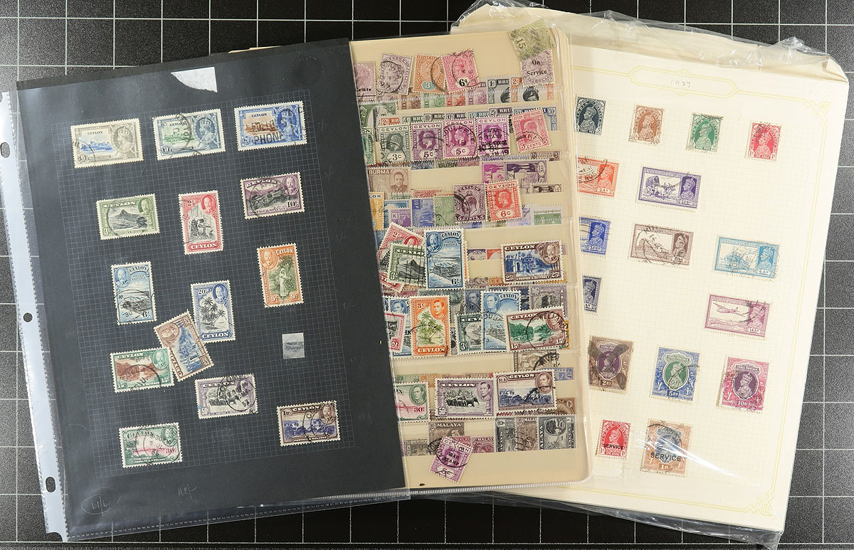 A bundle of British Asia and Pacific material, the balance of an estate that we have been breaking up. This collector bought from a number of local sources and then filed the material away, leaving the discovery and enjoyment up to a future purchaser. This lot has bidboard lots, dealer cards, loose album pages, etc. Some highlights include: India (with a bit from the back of the book and the States), Hong Kong (the older material tends to be used, the later, a mix of mint and used), with some Burma, Ceylon and Fiji. If you like putting order to chaos, this lot is for you. Substantial total catalogue value and interesting material throughout. Estimate =