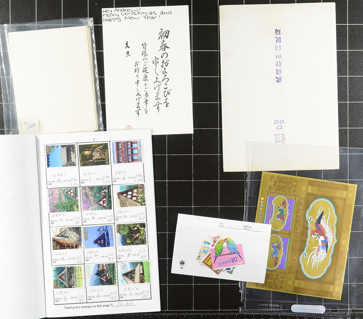 This estate balance includes a diverse group of year sets, bidboard lots and dealer offerings, creating a bundle of philatelic chaos, with both potential and value. The annual folders include 1959, 1968, 1980, 1987 plus a presentation folder from the 1964 Olympics. There is some pockets of nice mint material from the 1960's to the 1990's (the face value adds up quickly). And then there is a mix of mint and used material with no particular rhyme or reason, right up to about 2004. Happy hunting! Estimate =